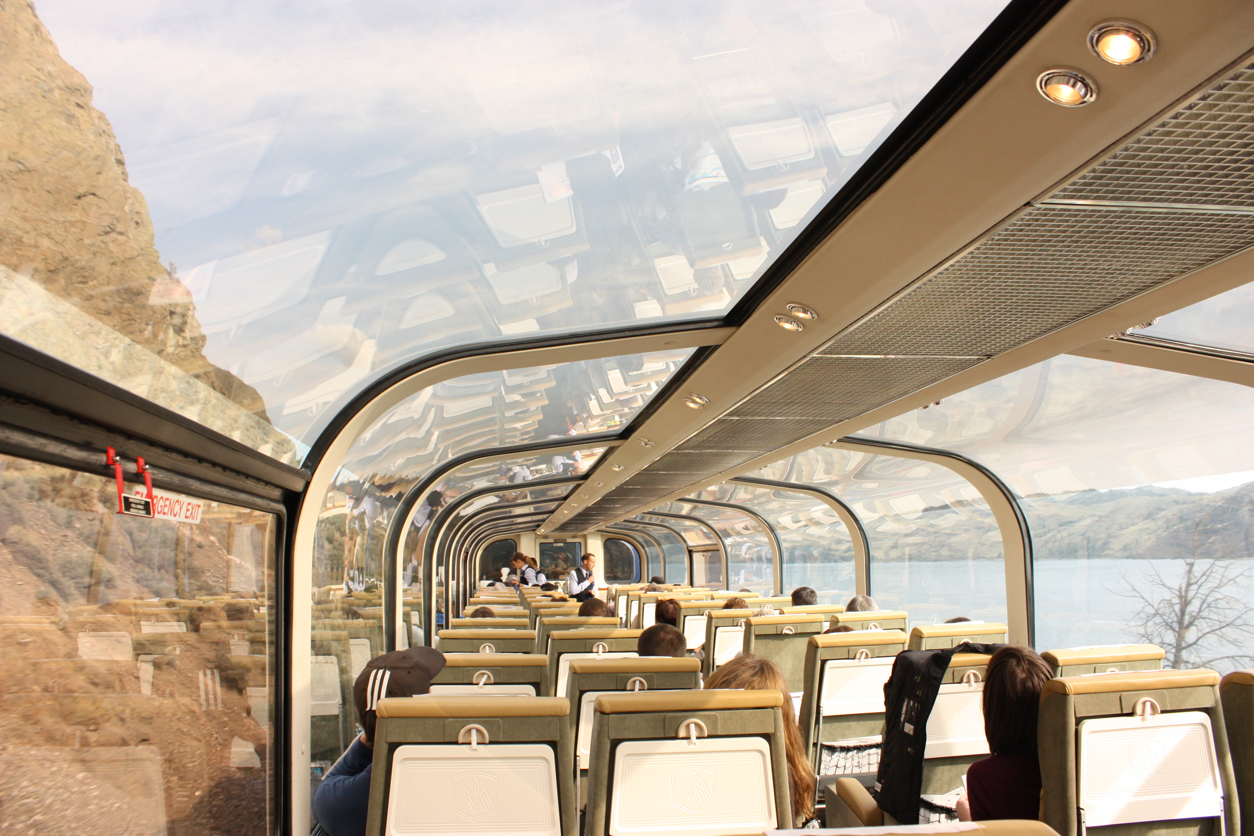 - Regarder par les fenêtres qui couvrent presque tout le toit du wagon et à saluer les gens qui, nous voyant passer, nous saluent eux aussi de la main;