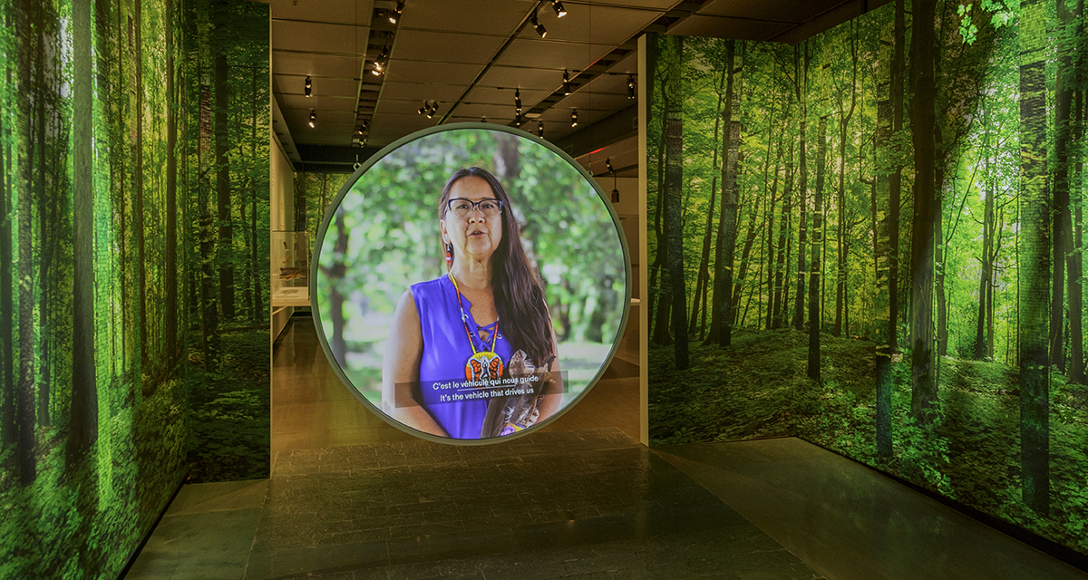 Pour profiter pleinement de la nouvelle exposition permanente du Musée McCord, il faut prendre le temps de s’asseoir, de lire et de regarder les témoignages vidéos des membres des Premières Nations, enregistrés dans plusieurs langues et résonnant dans les différentes salles du musée.