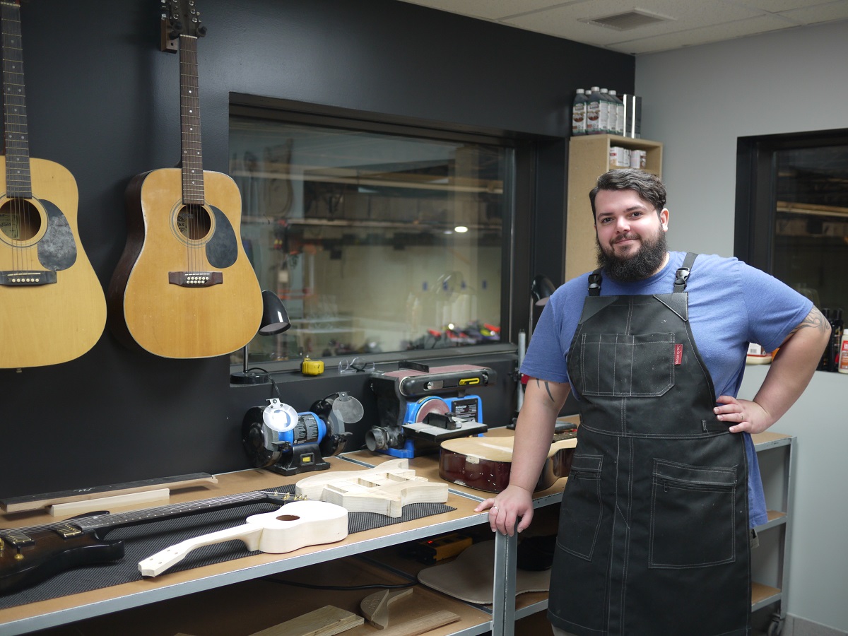 Maxime Vaillancourt a réalisé un rêve de longue date en inaugurant récemment l’atelier de lutherie MV Guitars à Montréal-Est. Ce passionné de guitare souhaite d’ailleurs conquérir un marché peu exploité dans le quartier.