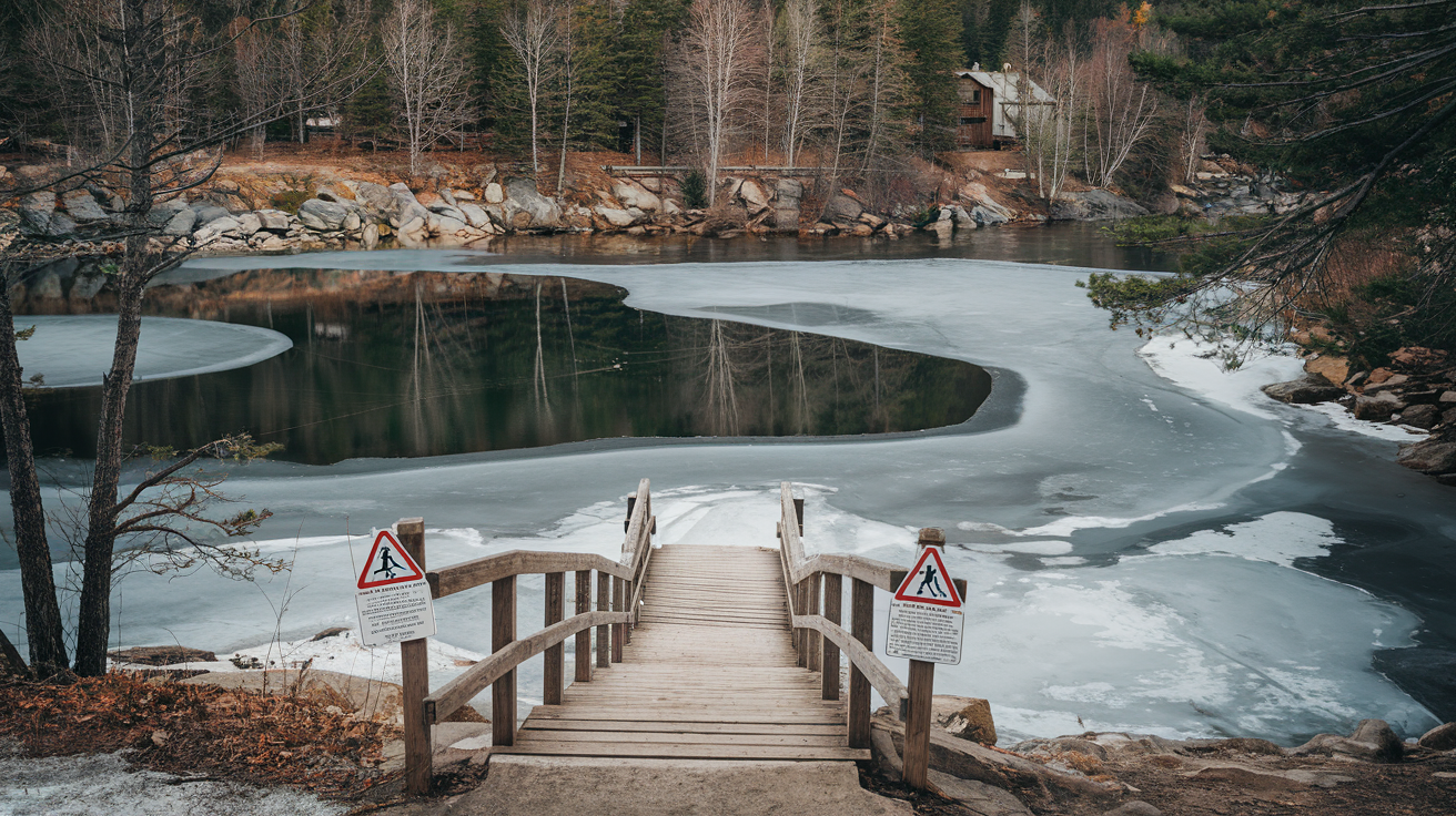 Pour éviter les accidents sur les plans d’eau glacés, il est recommandé de toujours vérifier l’épaisseur de la glace avant de s’y aventurer, de rester près des berges et de ne jamais s’aventurer seul sur la glace. Il est également conseillé de porter un équipement de sécurité tel qu’un harnais de sauvetage ou des crampons pour éviter les chutes.
