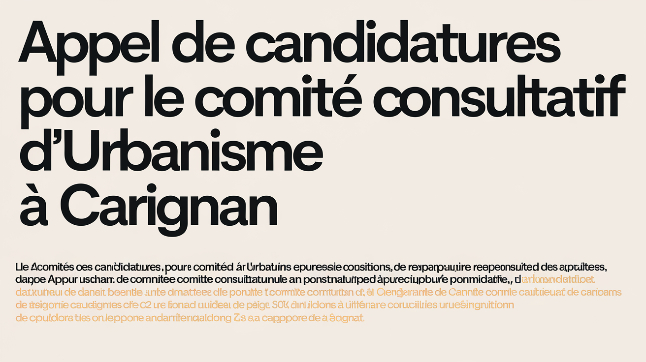 Les candidatures pour le Comité consultatif d’urbanisme sont ouvertes à tous les résidents de Carignan intéressés par les questions d’urbanisme et de développement durable. Un processus de sélection rigoureux sera mis en place pour garantir la représentativité et la diversité au sein du comité, assurant ainsi une prise de décision éclairée et équilibrée.