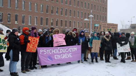 « C’est une réalité au Québec, les femmes qui travaillent en relation d’aide sont surmenées et sous-payées », dénonce pour sa part dans un discours l’étudiante de première année au baccalauréat en psychoéducation, Marguerite Sabourin. « Cela fait des années qu’elles demandent de meilleures conditions, mais le gouvernement fait la sourde oreille. » Environ 90% de la population étudiante en psychoéducation sont des femmes, estime l’AGÉPEUM.