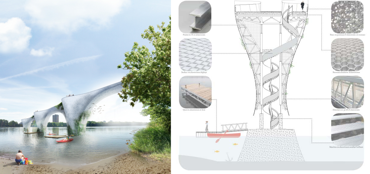 Un concours de design urbain mettant en vedette l’aluminium ravive la discussion entourant la création d’un deuxième lien entre Verdun et L’Île-des-Sœurs. Un des cinq projets lauréats, développé par la firme d’architecture ADHOC, a présenté un pont multiservice pour relier l’île à la rive.