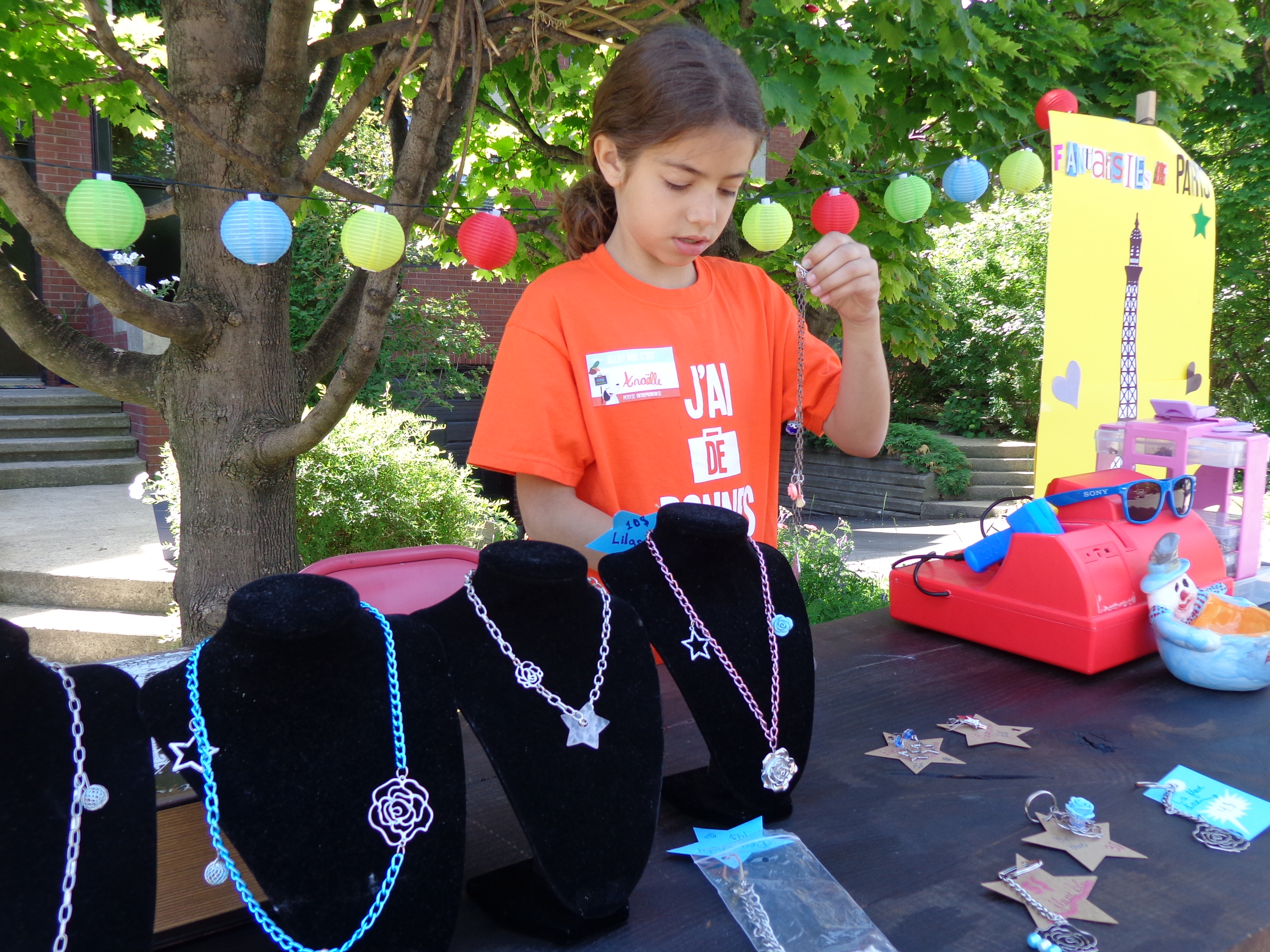 C’est le cas d’Anaëlle qui fabrique des bijoux. La fillette de 9 ans a ouvert son kiosque en compagnie de Charlotte âgée de six ans sur L’Île-des-Sœurs sur la rue Cours des Primevères : «Les Fantaisies de Paris d’Anaëlle».