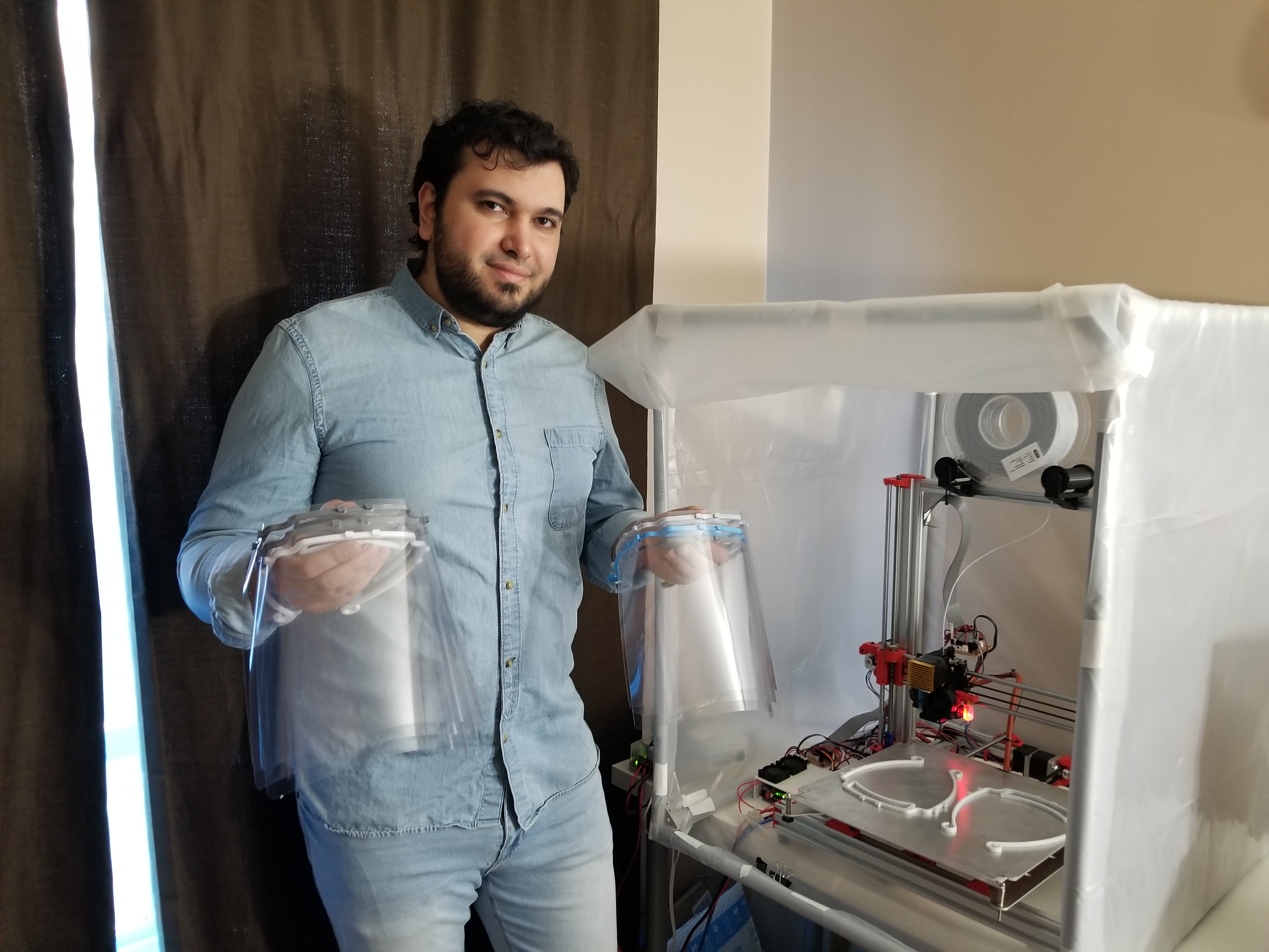 Avec l’accord de ses patrons, M. Benchlih utilise une imprimante 3-D de l’entreprise avec laquelle il peut découper du polychlorure de vinyle (PVC) ainsi que du plastique. À ce rythme, il parvient à fabriquer 30 visières par jour.