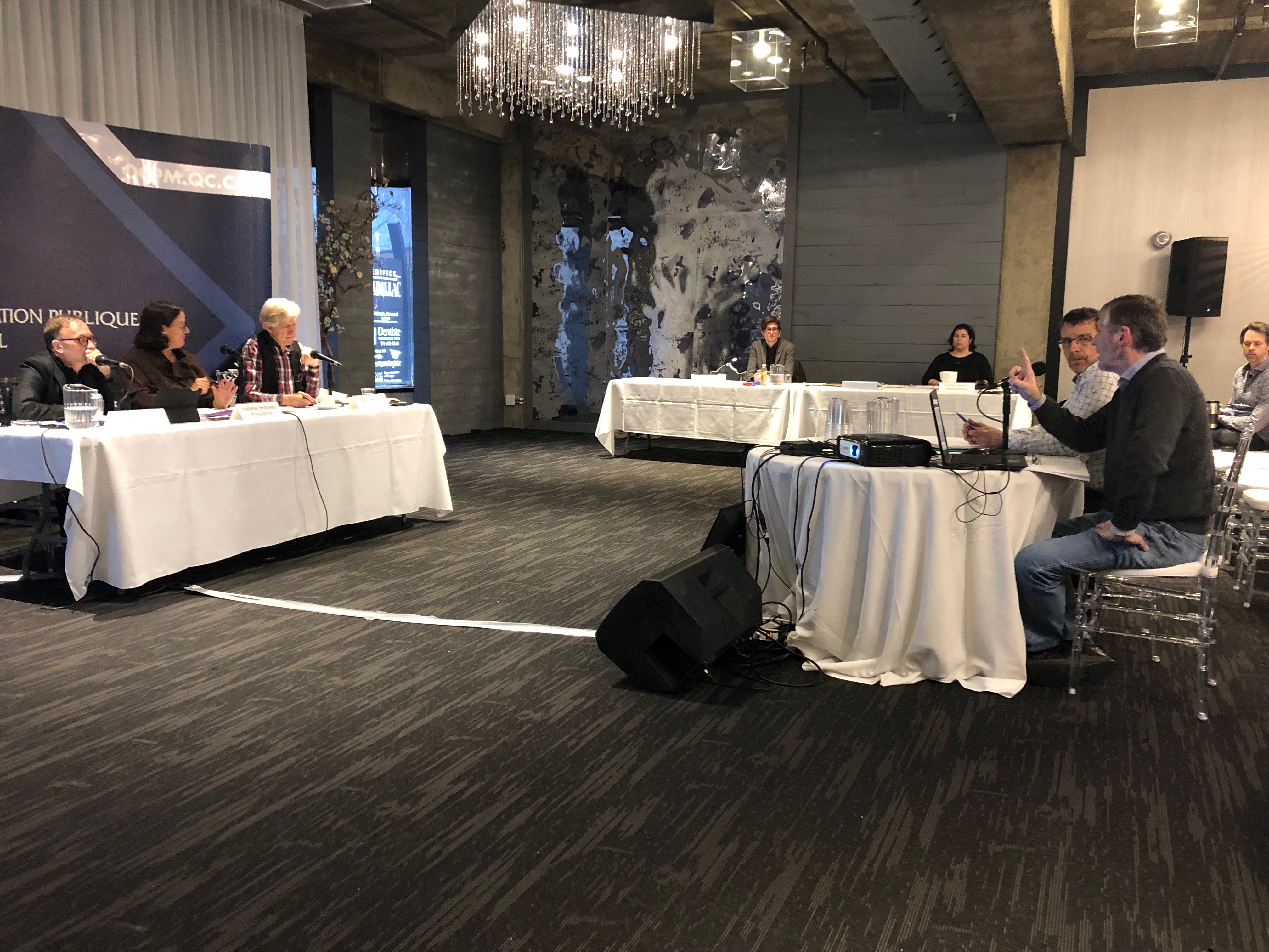 Une deuxième séance, avec des présentations entre autres du Conseil régional de l’environnement de Montréal, s’est déroulée cet après-midi. Elle sera suivie d’une troisième et dernière en soirée. Les citoyens désireux de transmettre leur opinion sur le projet peuvent toujours le faire, sur le site de l’OCPM, jusqu’à minuit ce soir.