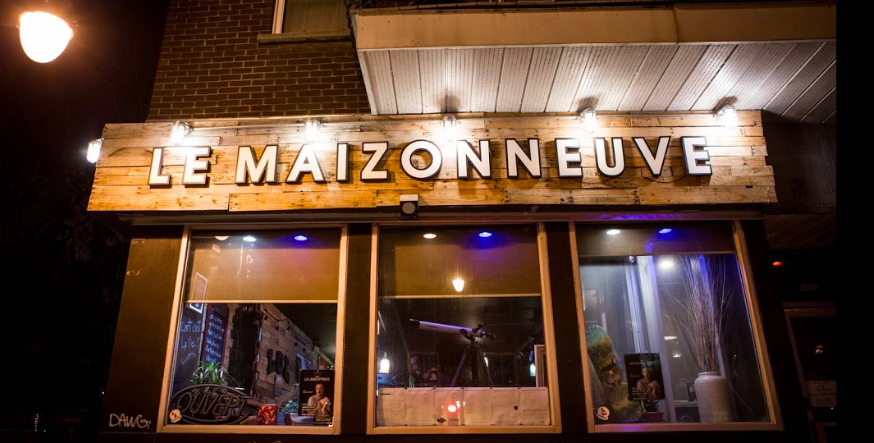 Situé sur la rue Sainte-Catherine, le Maizonneuve accueillait beaucoup de soirées culturelles, autant musicales qu’humoristiques. Des toiles d’artistes locaux étaient également exposées à l’intérieur et disponibles pour la vente.