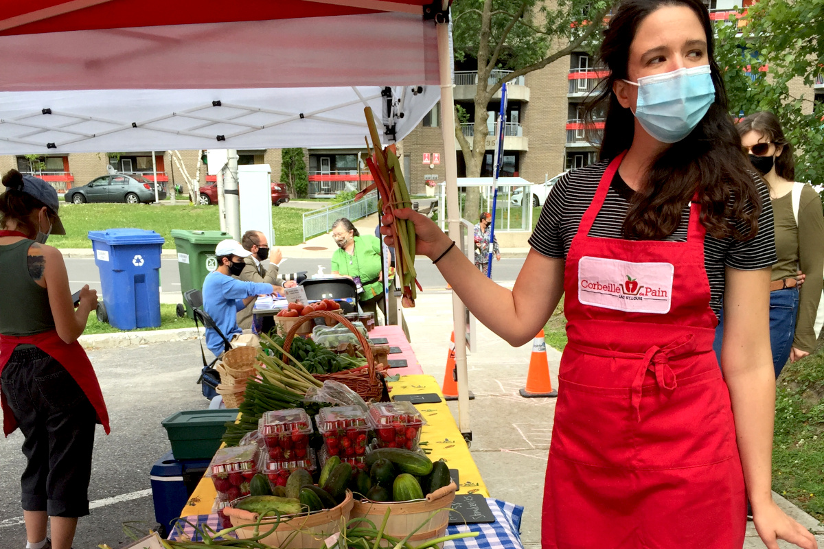 Tous les fruits et légumes vendus au marché sont cultivés par des producteurs établis dans un rayon de 30 kilomètres de l’arrondissement. La Corbeille de pain Lac Saint-Louis transforme aussi les surplus des marchés en mets préparés pour les vendre et éviter les pertes.