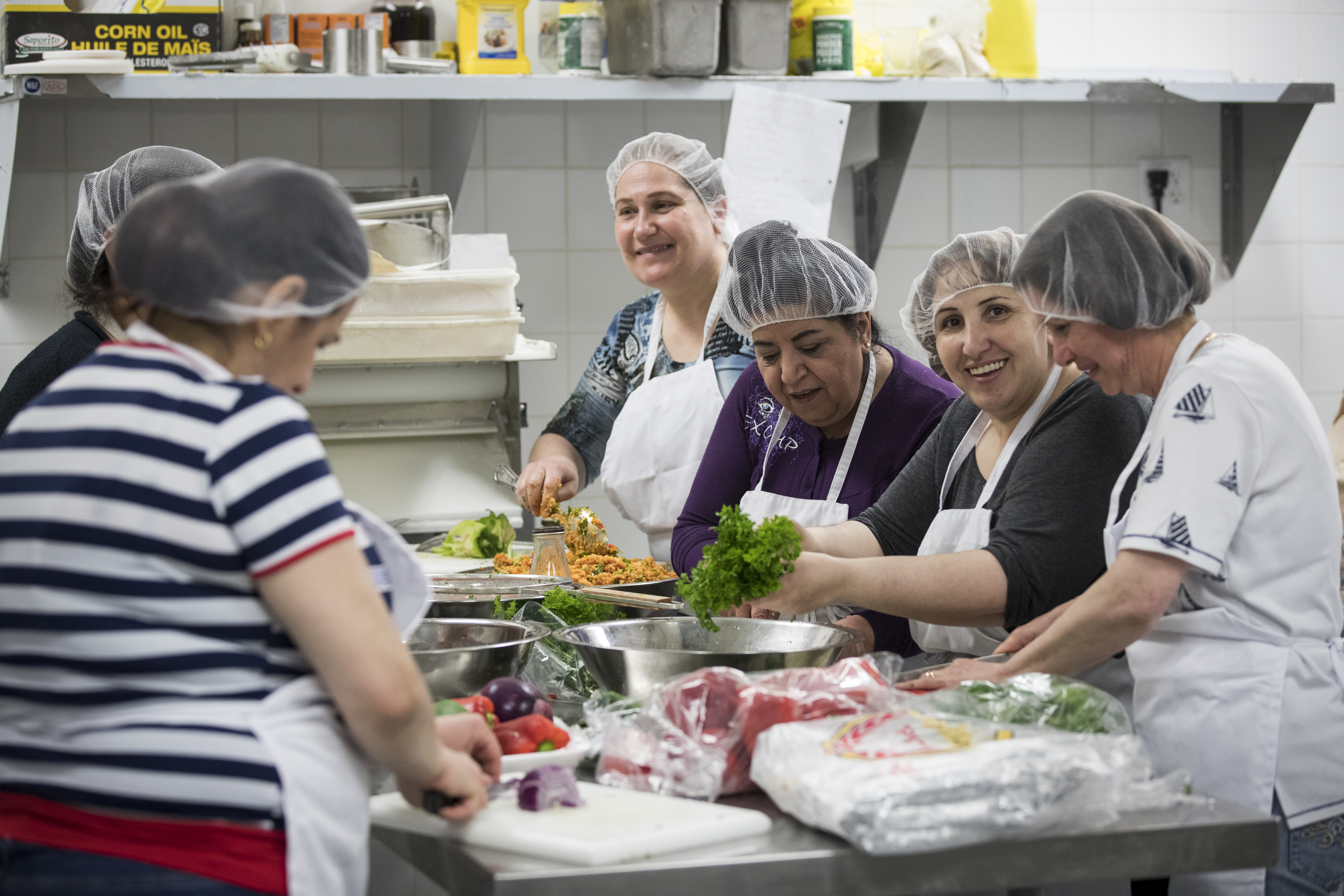 Chaque semaine dans un local de Ville Mont-Royal, une vingtaine de réfugiées syriennes mettent la main à la pâte pour préparer des boîtes à lunch ou des buffets pour divers particuliers et entreprises. Elles représentent Les Filles Fattoush, un service de traiteur qui offre à de nouvelles arrivantes une première expérience de travail au pays.