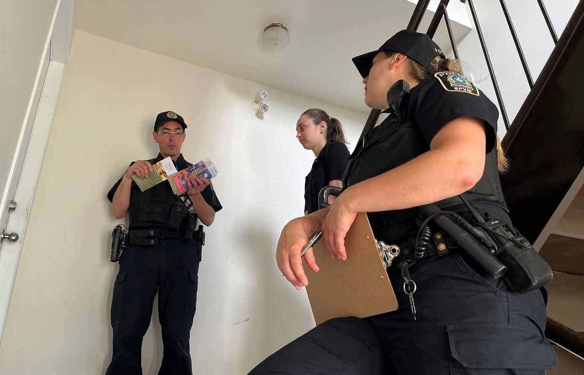 Métro a accompagné une équipe composée de deux policiers, Steve et Kristine, ainsi que de Laurence-Emmanuelle, agente de résilience au sein de l’organisme Prévention Pointe-de-l’Île.