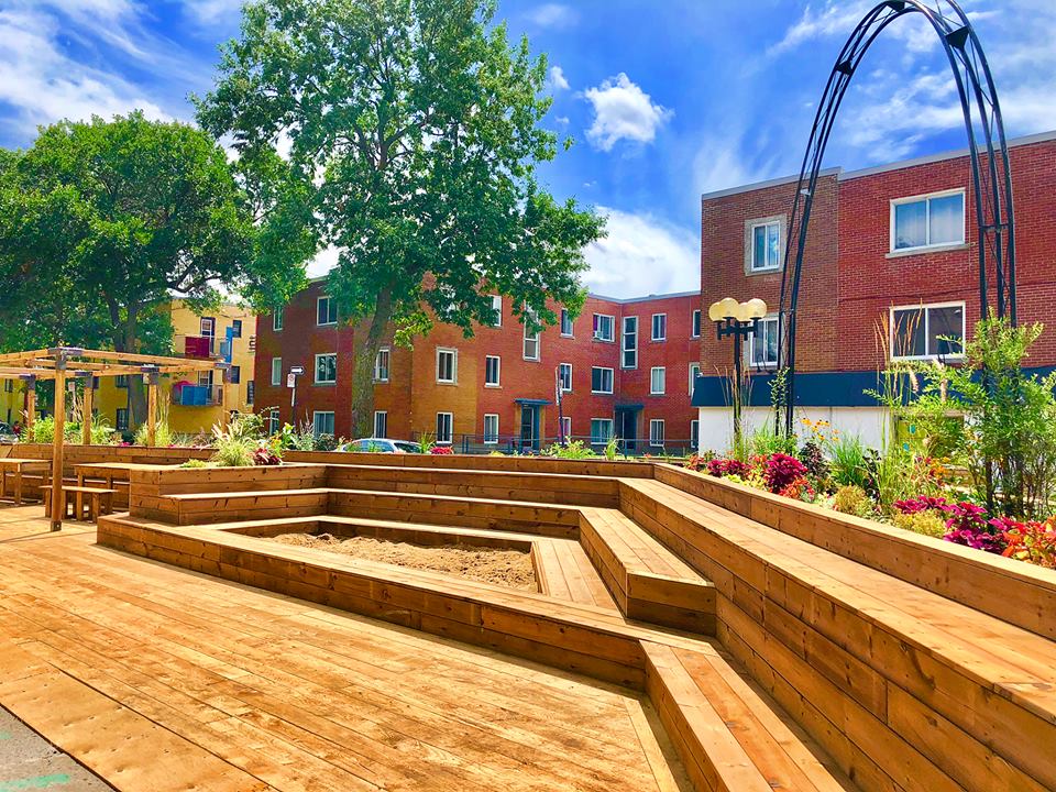 Réalisé par l’organisme La Pépinière | Espaces collectifs et à la demande de la Société de développement commercial de la Promenade Masson, ces deux nouvelles places publiques sont créées sur un mode consultatif et évolutif sur trois ans.