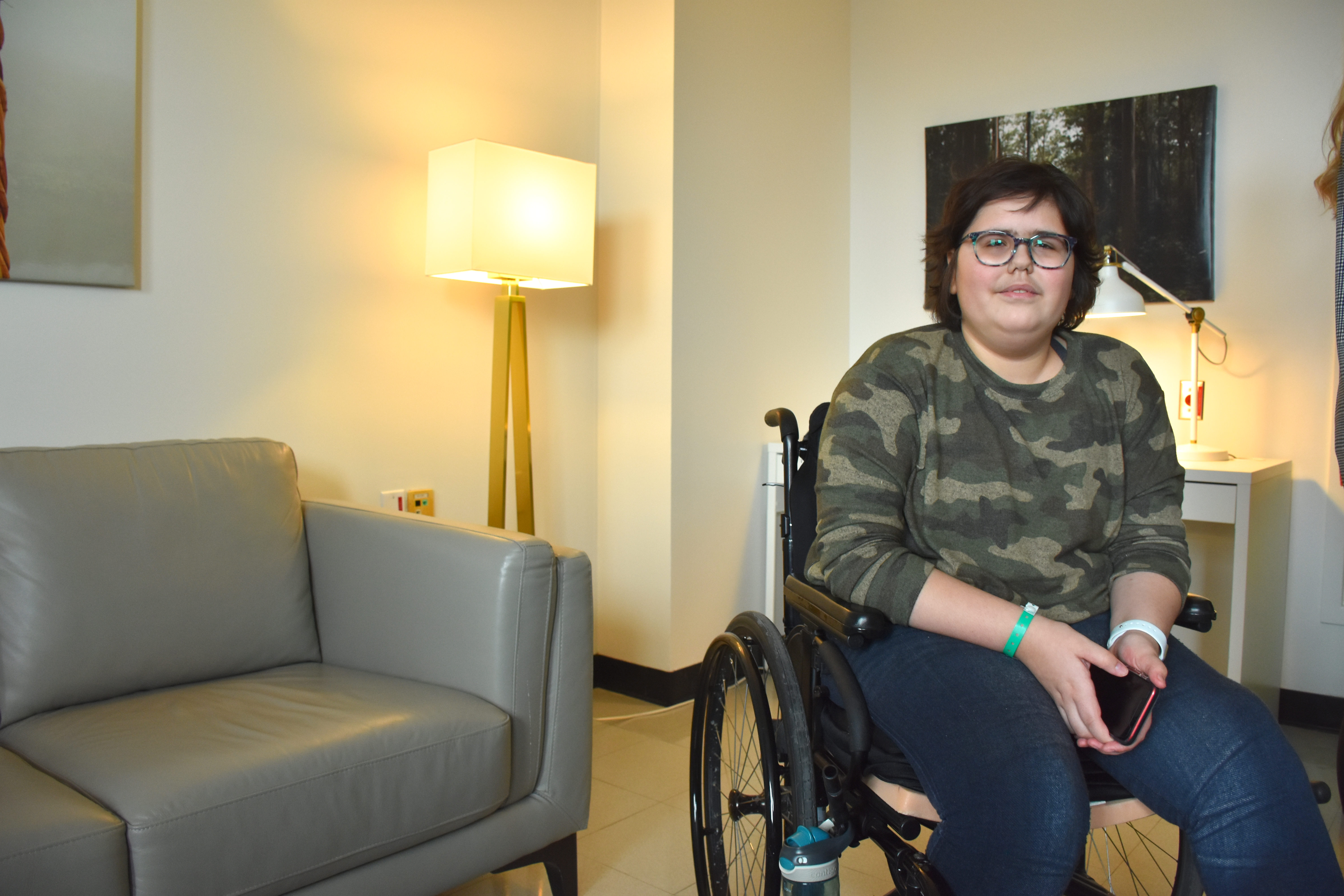 Jeune adolescente, Océane avait été diagnostiquée d’un type de cancer des os en 2018. Maintenant en rémission, elle n’a cependant pas encore retrouvé l’entière mobilité de sa jambe. Elle peut néanmoins rentrer chez elle la fin de semaine. « Je revois mes amis, ils sont compréhensifs avec moi. On fait aussi des activités en famille, on essaie de s’adapter. »