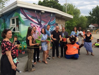 «Nous avons travaillé avec le Centre communautaire Bon Courage ainsi qu’InTerreArt afin de proposer un atelier de customisation de pots de fleurs et contribuer au verdissement du quartier», explique Chani Caron Piché, coordonnatrice de projets et marketing chez Kolab, l’organisme qui a chapeauté le projet de murale.