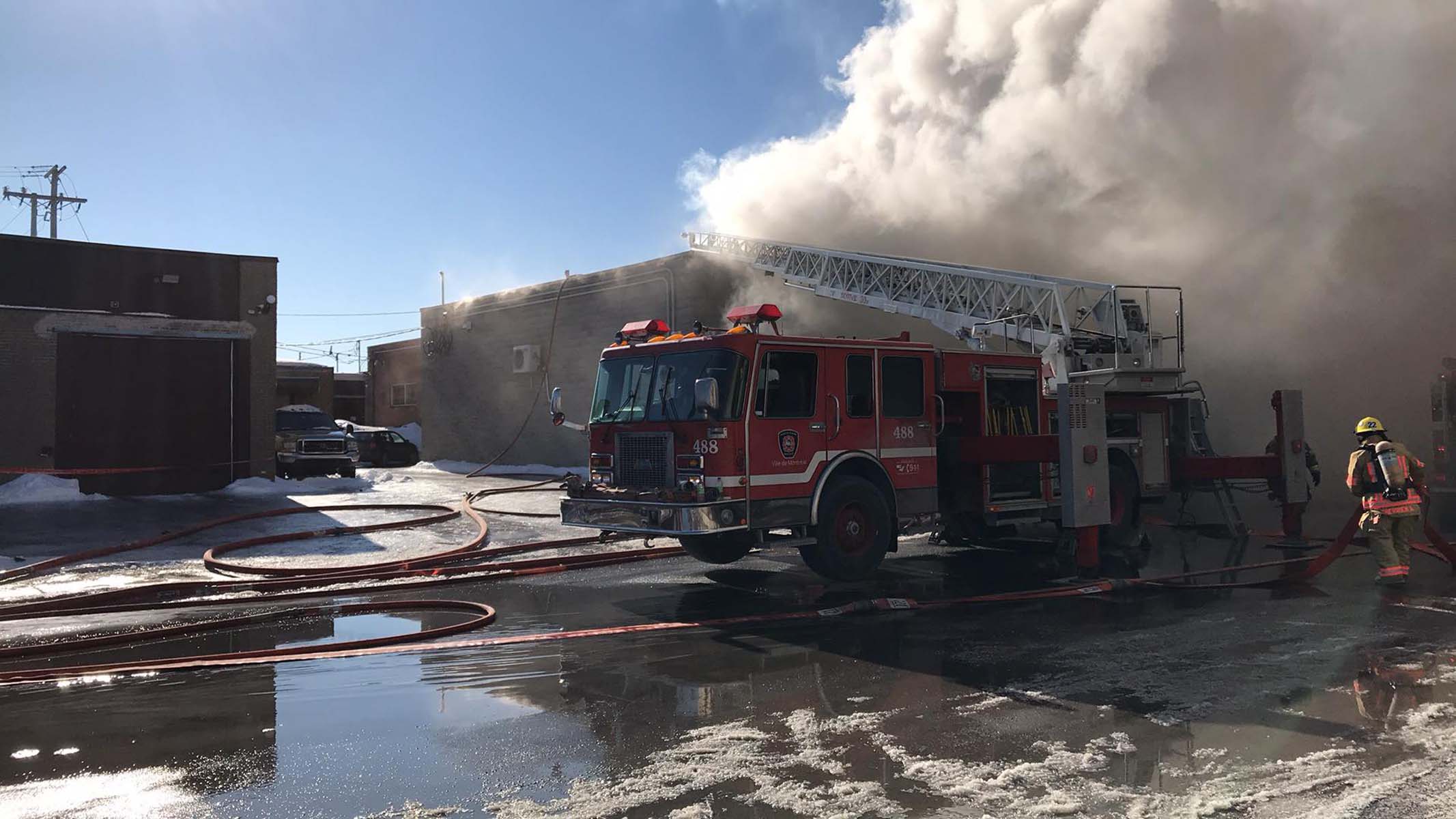 Un incendie a ravagé un bâtiment abritant une serre de production de cannabis légal dans l’arrondissement de Saint-Léonard.