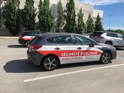 Une des voitures utilisées pour patrouiller les espaces publics de Saint-Léonard
