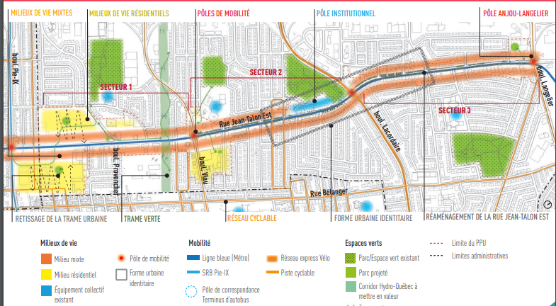 La rue Jean-Talon Est est stratégique pour la réalisation d’un PPU puisqu’elle est vouée à une transformation et une densification dans les prochaines années, avec l’arrivée de quatre nouvelles stations de la ligne bleue du métro.