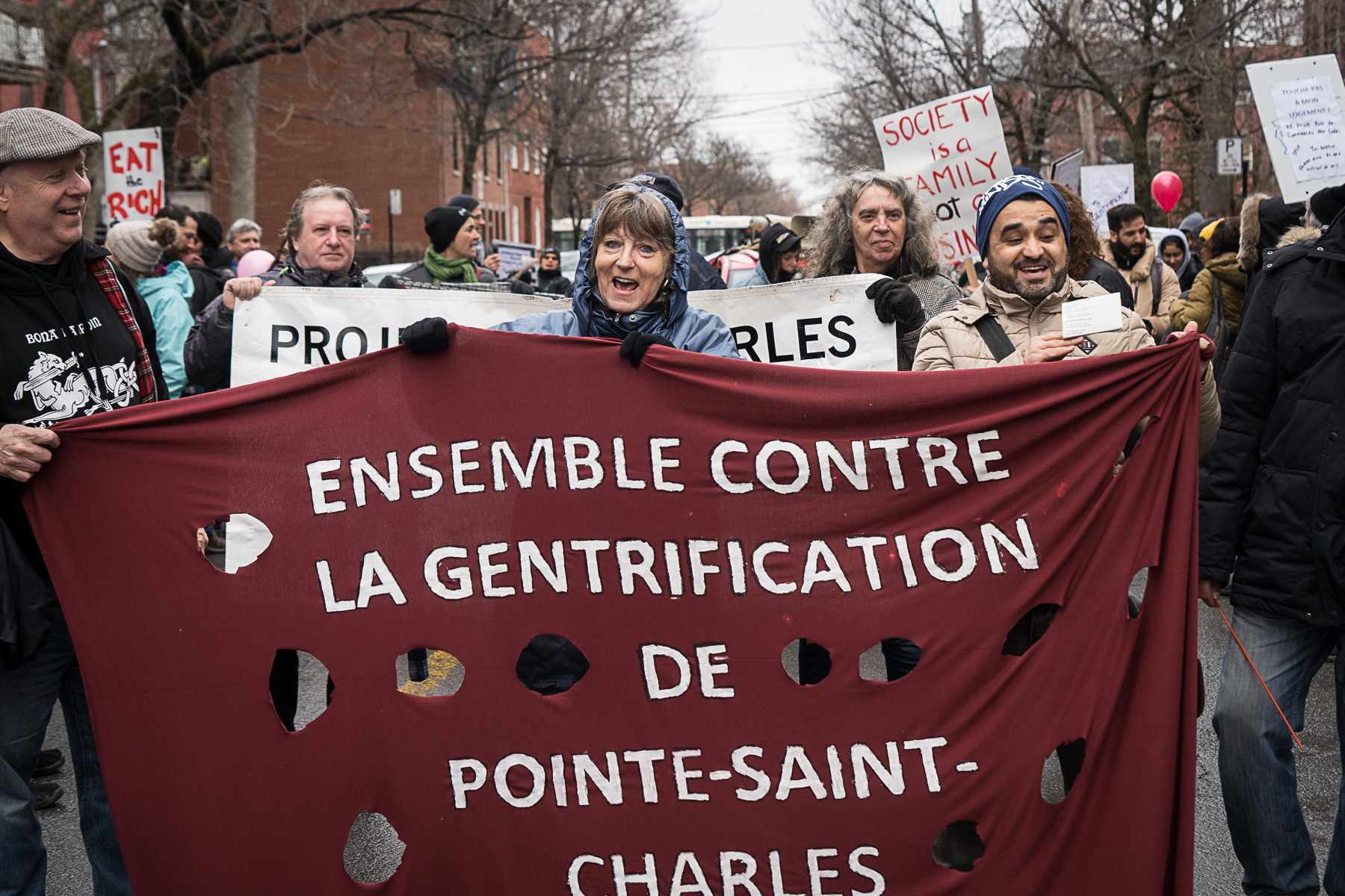 Scandant les slogans «Des condos y’en a trop, on veut des logements sociaux», une centaine de personnes ont manifesté paisiblement sous la pluie froide, lundi après-midi, dans les rues du quartier Pointe-Saint-Charles devenu un endroit prisé des spéculateurs immobiliers.