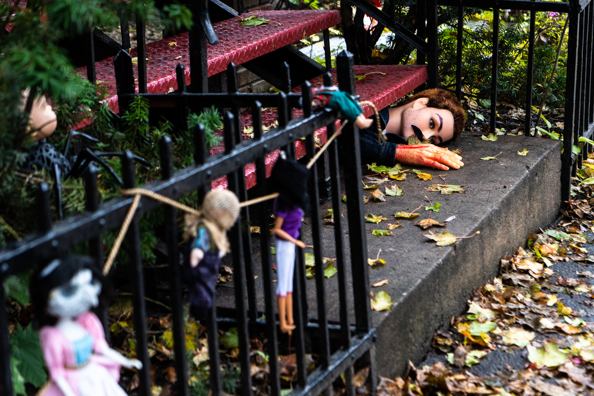 Un couple de la rue Berri, dans l’arrondissement de Villeray–Saint-Michel–Parc-Extension, s’est laissé prendre au jeu pour l’Halloween. Jean-François Normand et sa compagne ont décoré la devanture de leur demeure ainsi que l’arbre sur le trottoir avec bon nombre de poupées diverses.