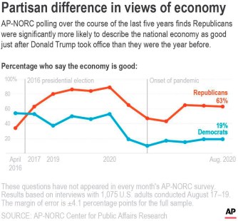 Les électeurs de M. Trump écoutent ses hyperboles incessantes au sujet de l’économie et croient que ce président homme d’affaires a fait de la magie. Les partisans de M. Biden y voient une illusion — une économie qui se remettait sous M. Obama, mais qui tente maintenant, avec la pandémie, de se remettre en marche, sans véritable plan de la part de M. Trump.